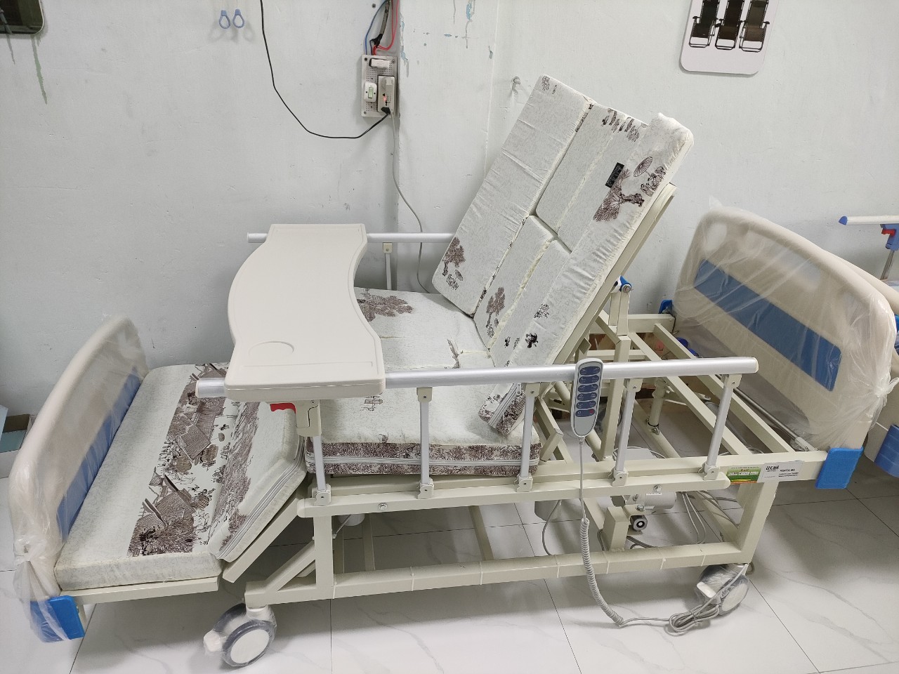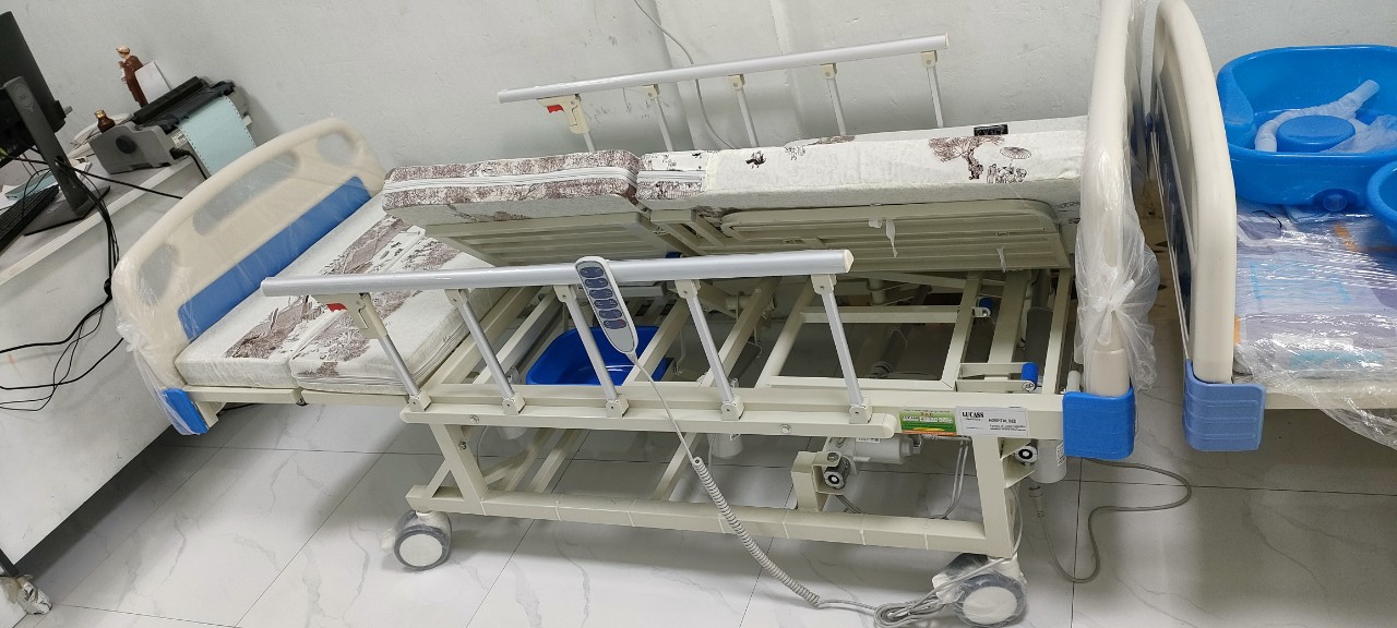 - Đặc biệt, giường được trang bị thêm tay quay dự phòng khi cúp điện hoặc di chuyển giường bệnh đến nơi không có điện. Lưu ý khi sử dụng tay quay dự phòng, mọi người cần lưu ý tắt phần động cơ điện, tránh vừa sử dụng điện vừa sử dụng tay quay sẽ dễ bị lỗi.