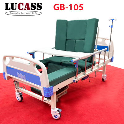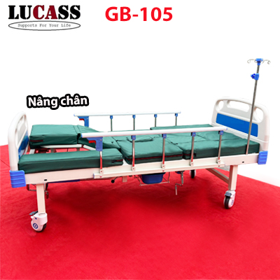- Với 3 tay quay, giường cho phép điều chỉnh độ nâng của đầu giường, nâng/hạ chân giường và nghiêng trái/phải một cách dễ dàng. Điều này giúp tạo ra tư thế thoải mái cho người bệnh. Cần gạt để sử dụng bô vệ sinh vô cùng tiện dụng.
