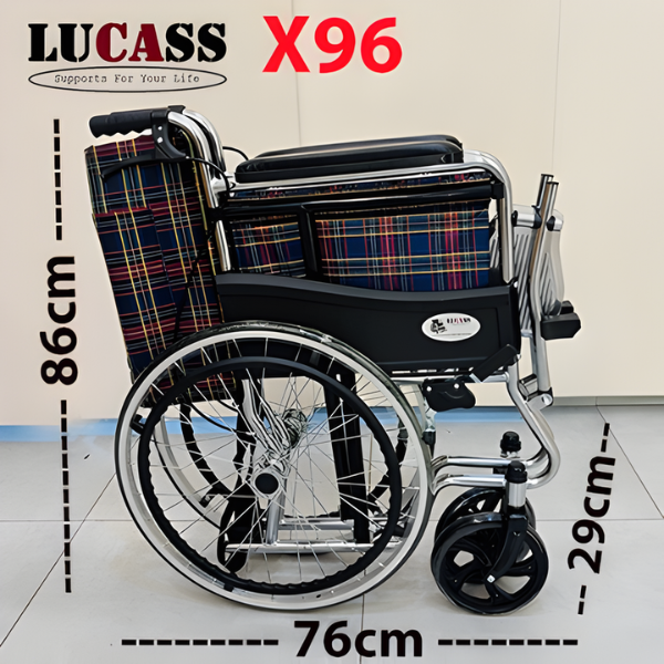 Xe lăn Lucass X96 là lựa chọn lý tưởng cho người cao tuổi, người khuyết tật hoặc người đang phục hồi chức năng sau chấn thương. Thiết kế thông minh với khung thép sơn tĩnh điện chắc chắn, cùng chất liệu vải kaki thoáng mát giúp người dùng luôn thoải mái dù sử dụng trong thời gian dài. Đặc biệt, xe có thể gấp gọn dễ dàng, thuận tiện khi di chuyển hoặc cất giữ trong không gian nhỏ.