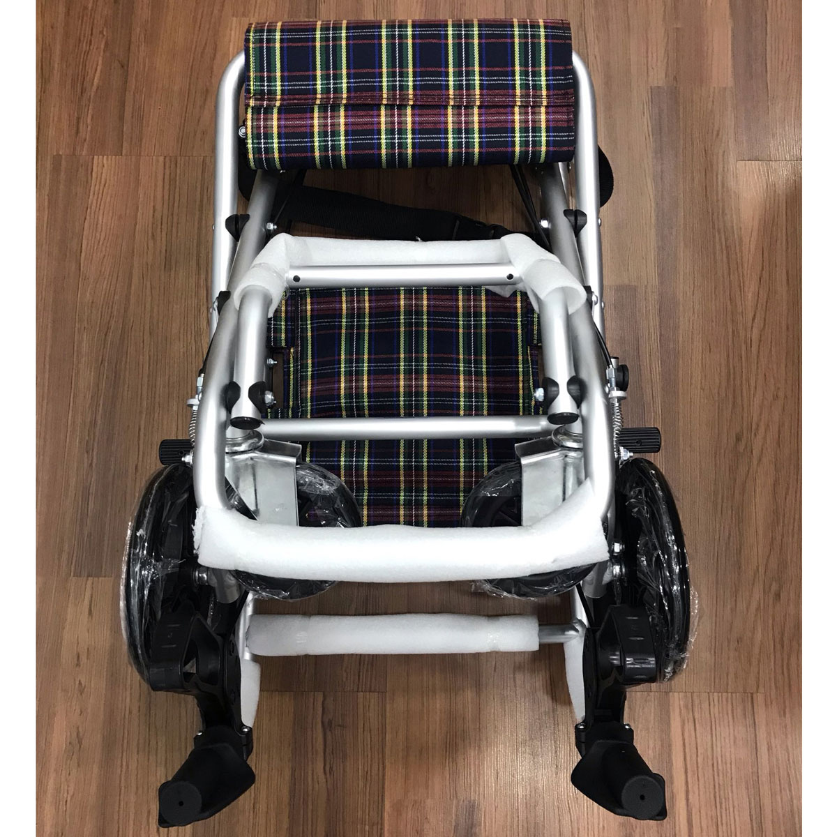 Sản phẩm đi kèm túi đựng xe lăn rất tiện lợi cho việc mang theo. Tay đẩy phía sau có thắng sẽ đảm bảo an toàn cho người dùng.